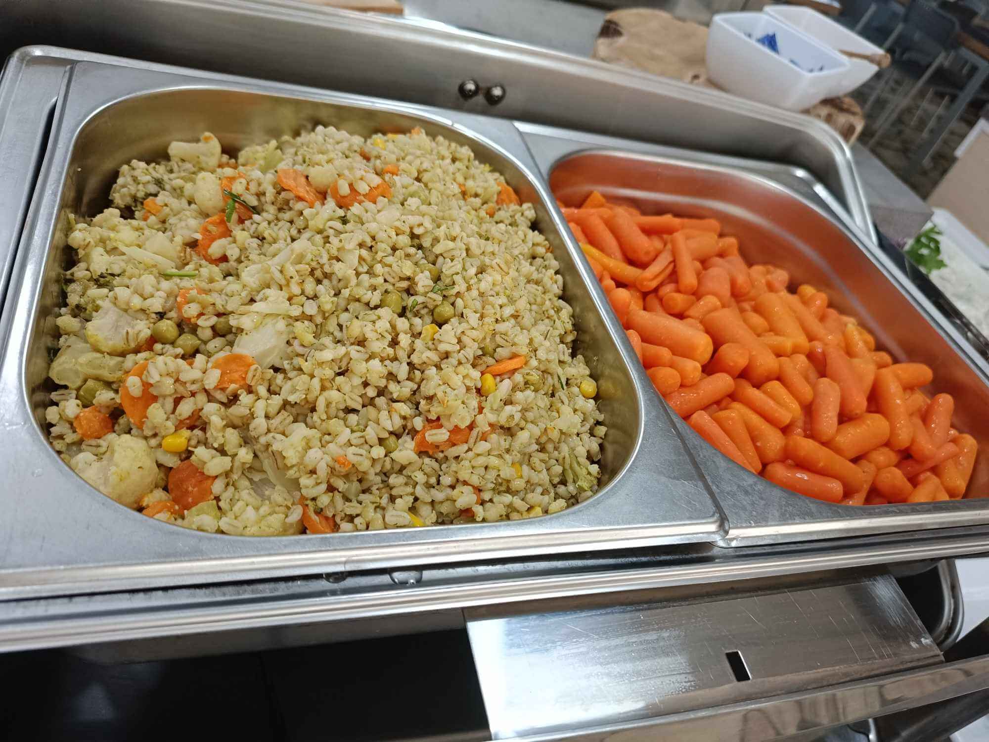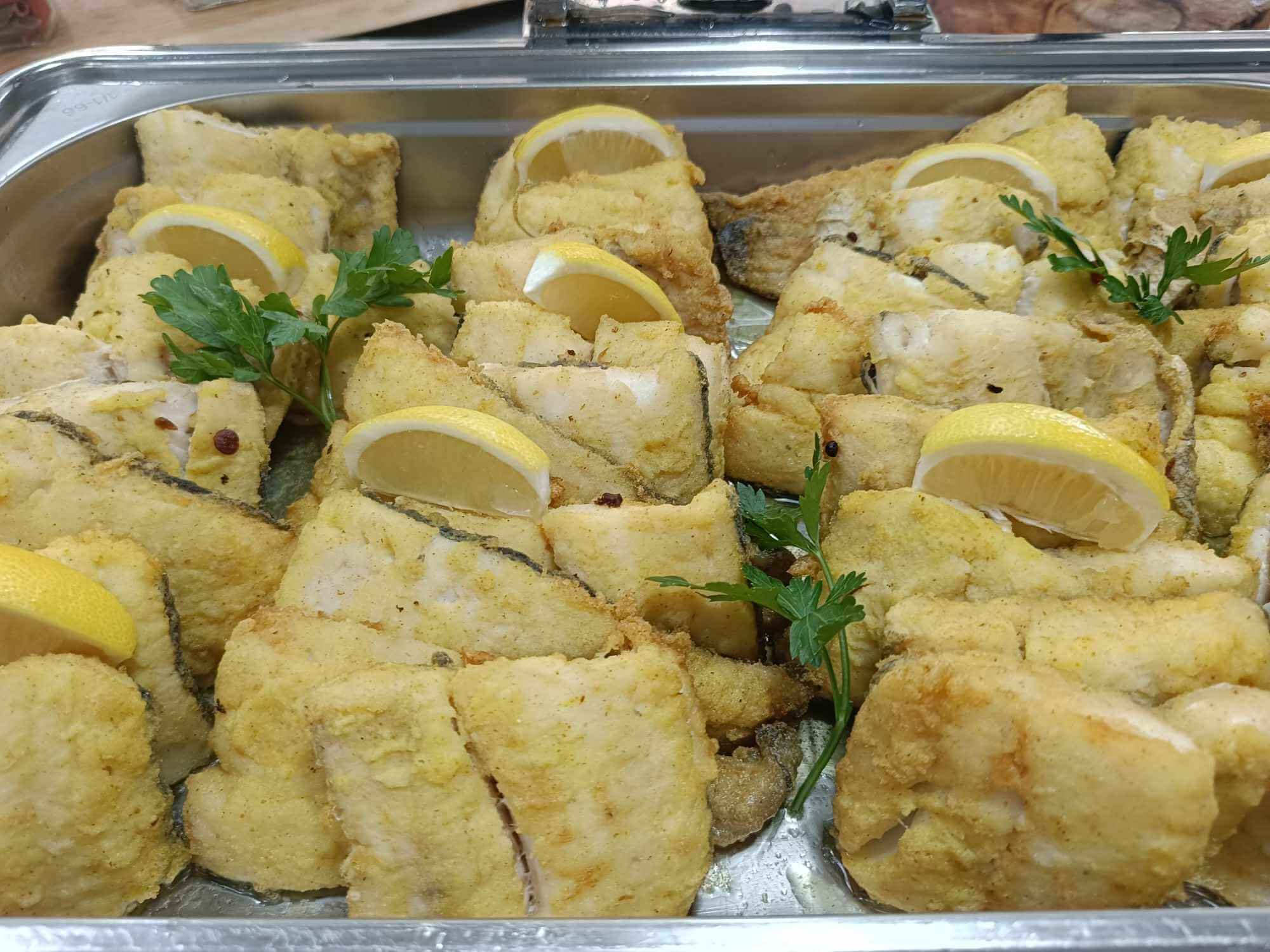 Zupa owocowa, Żurek z jajkiem, Ryba smażona, Skrzydełka pieczone, Ziemniaki gotowane, Pieczone ziemniaki, surówki, owoce, deser mleczny z chia