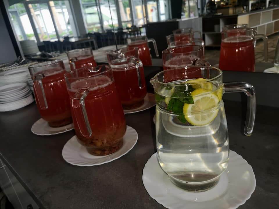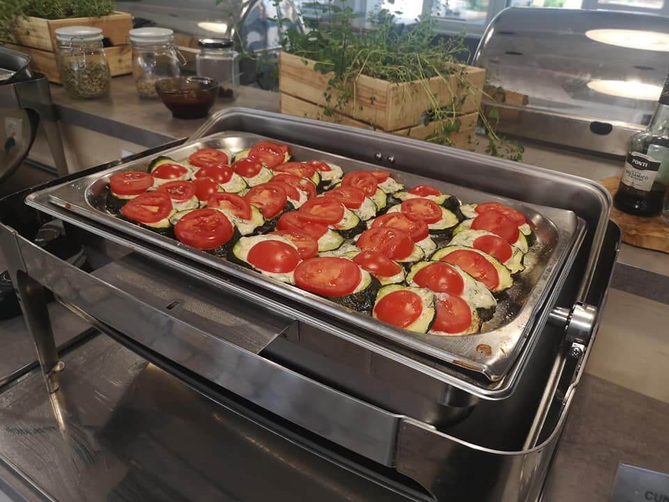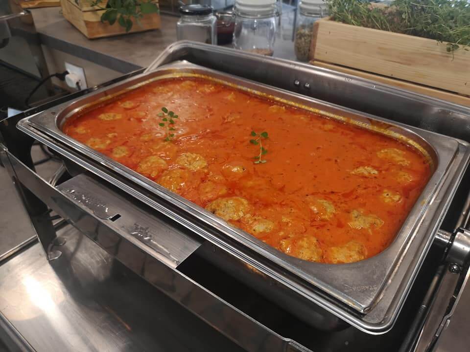 Zupa Krupnik, Zupa chłodnik, Filet z kurczaka panierowany, Frykadelki w sosie pieczeniowym, Ziemniaki gotowane, Kluski śląskie, surówki, ciasto, galaretka owocowa